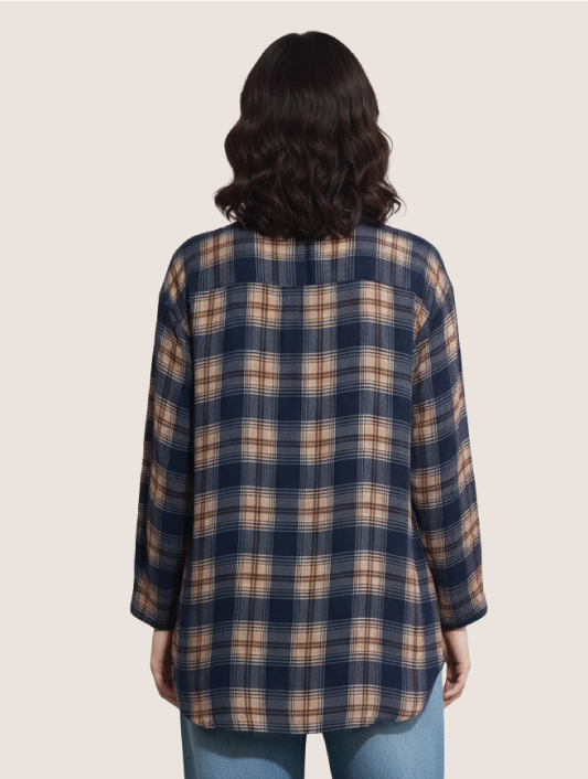 - Quadri Classici: L’intramontabile motivo a quadri è proposto in una sofisticata palette di blu navy intenso, beige caldo e marrone ricco, rendendolo incredibilmente versatile.