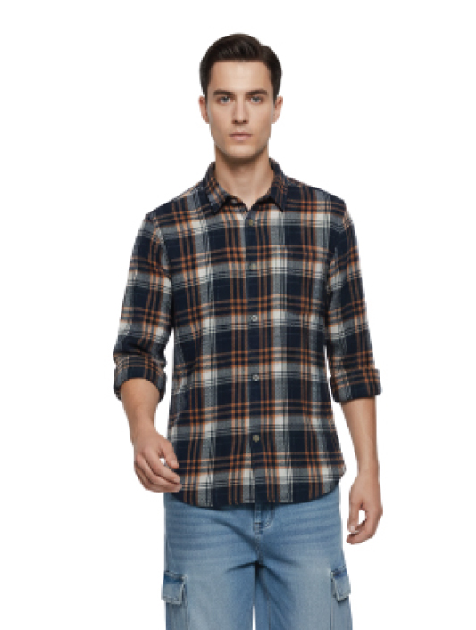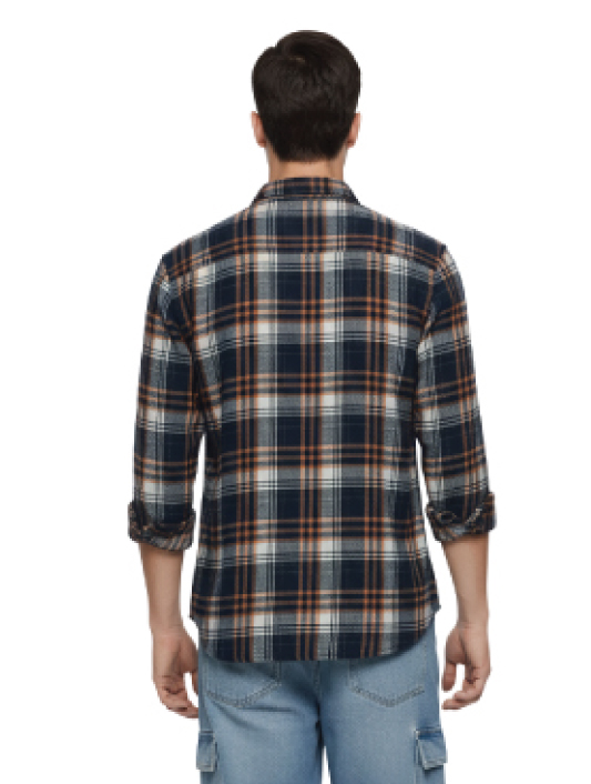 Camicia casual a quadri blu navy e arancione