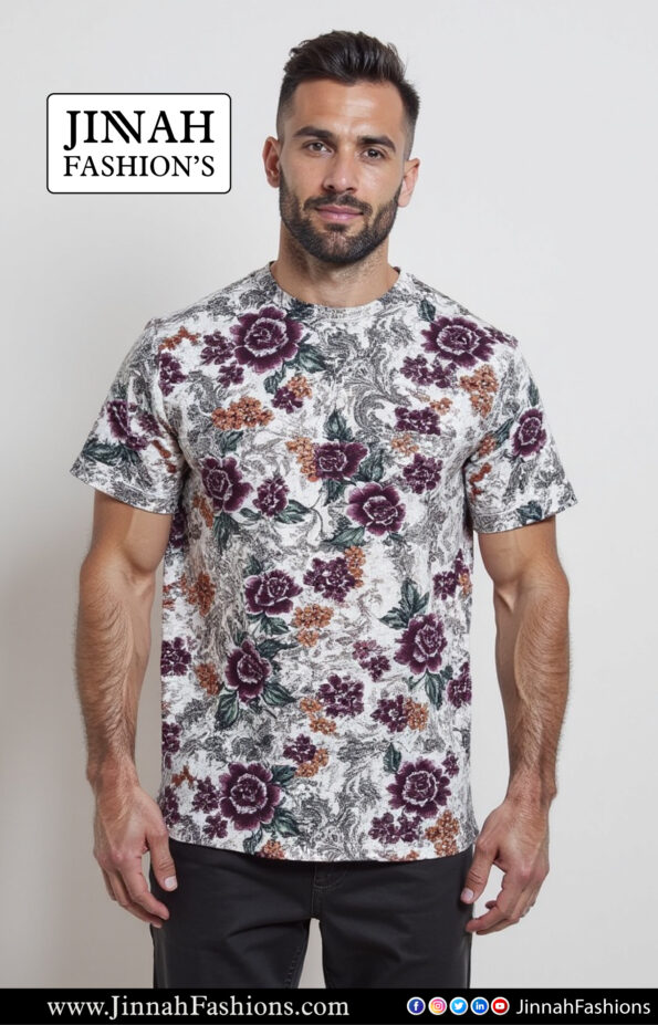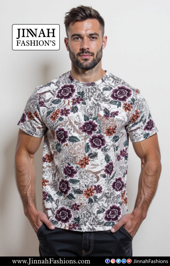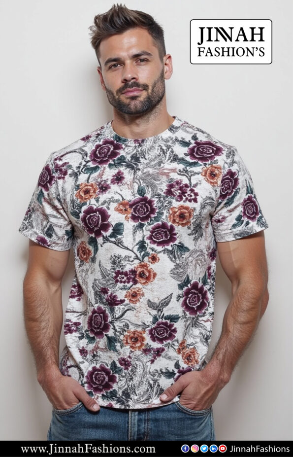 xpertly designed for a fresh, stylish look, this men’s short sleeve t-shirt is made from high-quality raw cotton felpa. The half sleeve and flower printing add a touch of uniqueness, while the amazing fitting guarantees maximum comfort. Elevate your everyday wardrobe with this versatile and trendy t-shirt.