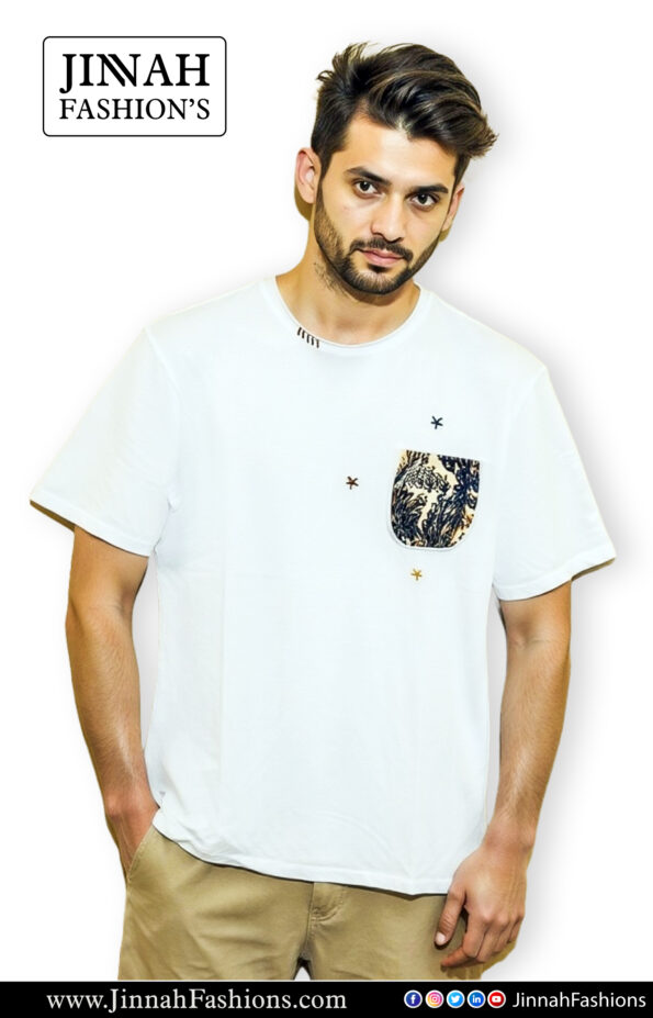 Stay effortlessly stylish with this premium quality T-shirt, featuring a unique printed pocket and subtle embroidered details. Made from soft, breathable cotton, this tee is perfect for casual and everyday wear.