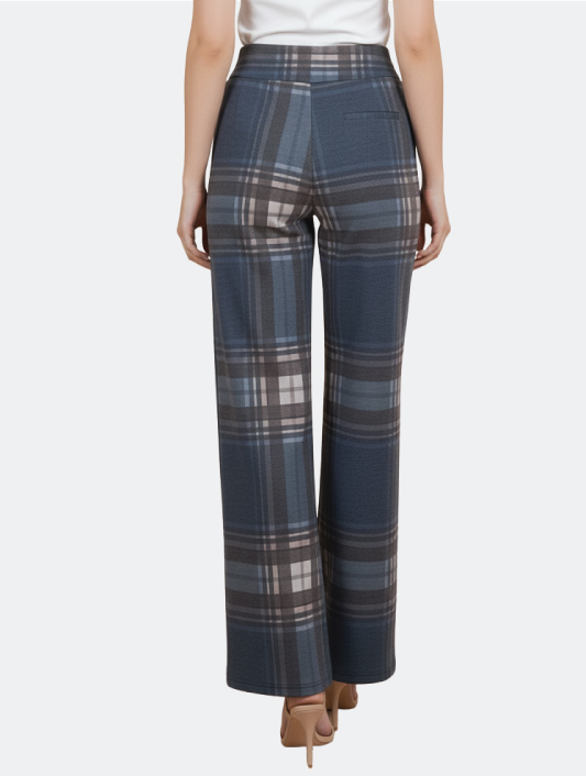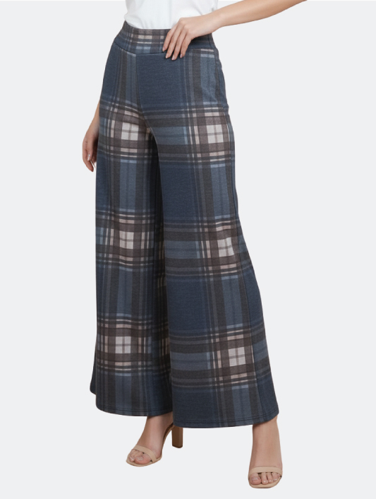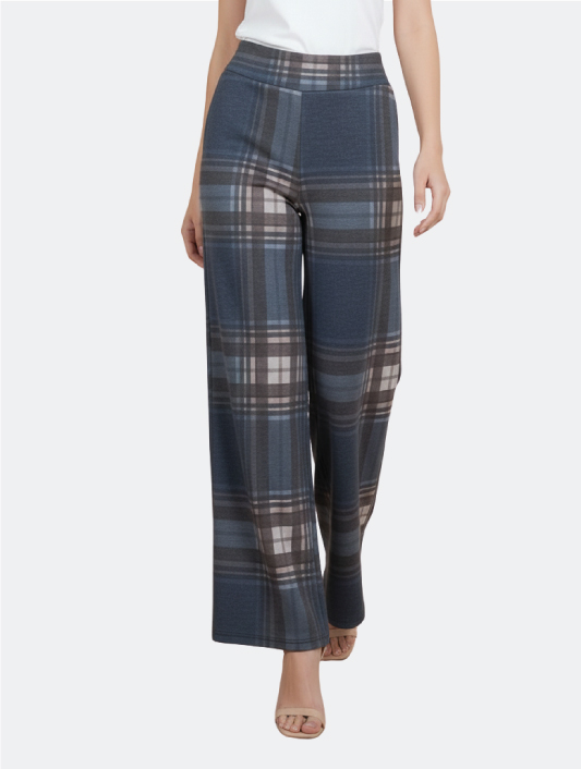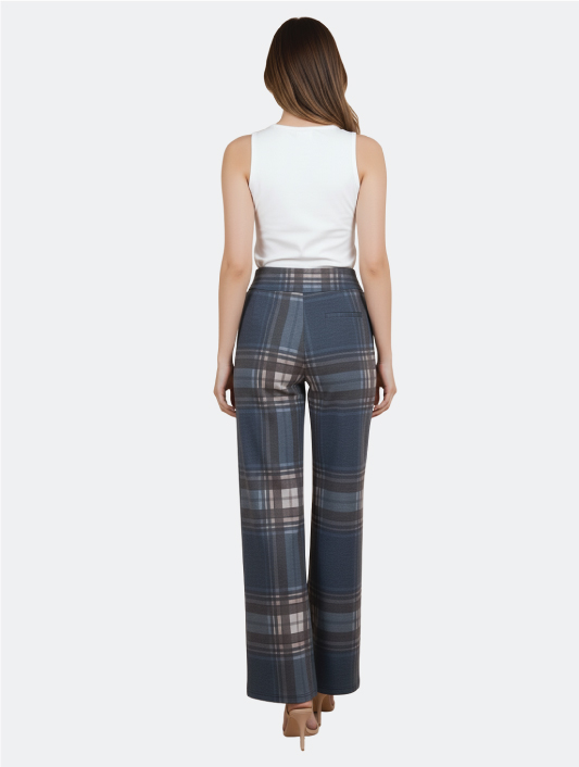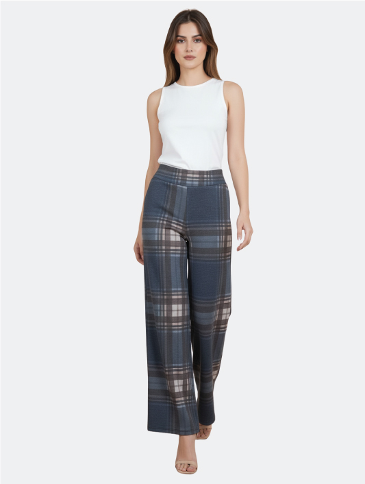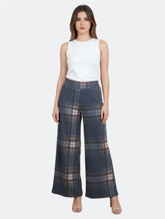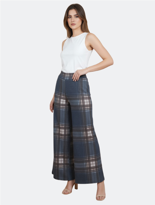 Pantaloni a Gamba Larga a Quadri Blu