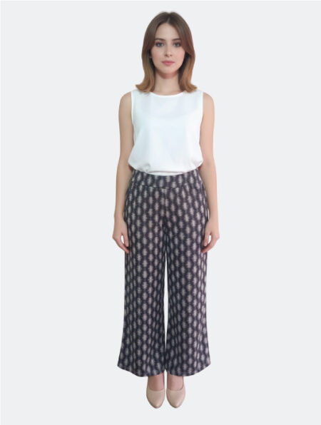 Taglio Elegante a Gamba Larga: La silhouette fluida e ampia crea una linea slanciata e armoniosa, garantendo libertà di movimento e una vestibilità moderna e rilassata che valorizza ogni tipo di corpo.