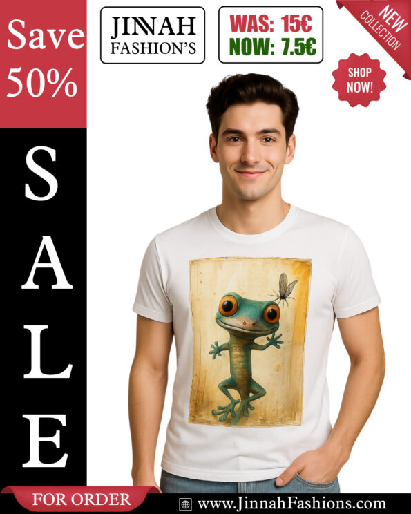 Add a touch of fun to your wardrobe with this premium quality T-shirt featuring a vibrant gecko graphic. Made from soft, breathable cotton, this tee offers unmatched comfort and style. A must-have for those who love unique and artistic fashion.